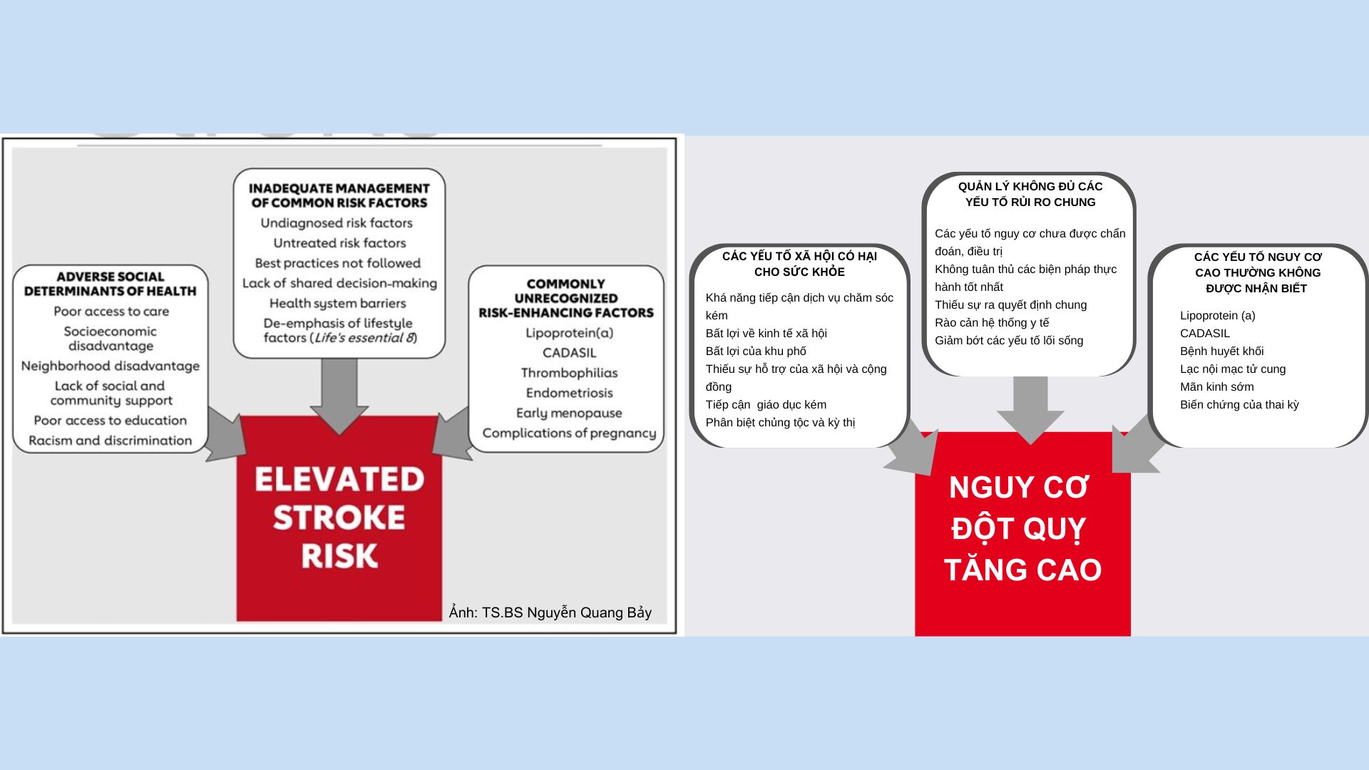9. Lạc nội mạc tử cung, suy buồng trứng sớm (trước 40 tuổi) và mãn kinh sớm (trước 45 tuổi) đều có liên quan đến việc tăng nguy cơ đột quỵ. Vì vậy, cần sàng lọc cả 3 tình trạng này trong việc đánh giá và quản lý các yếu tố nguy cơ mạch máu ở nhóm người này nhằm giảm nguy cơ đột quỵ.