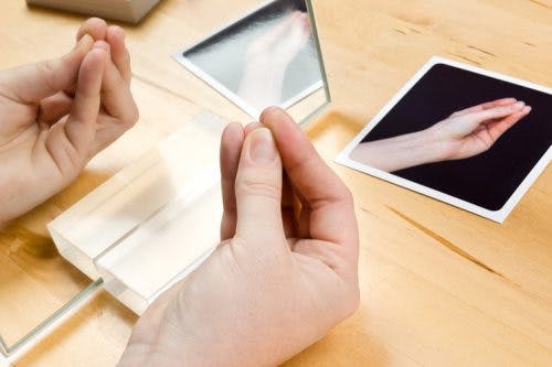 Phương pháp trị liệu dành cho những người sống sót sau đột quỵ này bao gồm việc sử dụng một tấm gương trên mặt bàn để che cánh tay bị ảnh hưởng bằng sự phản chiếu của cánh tay đang hoạt động. Sau đó, bạn thực hiện các bài tập trị liệu tay trên mặt bàn trong khi nhìn vào hình ảnh phản chiếu. Mặc dù bạn biết rằng bạn chỉ di chuyển một tay, nhưng nó đánh lừa bộ não nghĩ rằng bạn đang di chuyển cả hai tay. Điều này giúp kích hoạt tính linh hoạt thần kinh và từ từ cải thiện khả năng vận động ở tay bị ảnh hưởng.