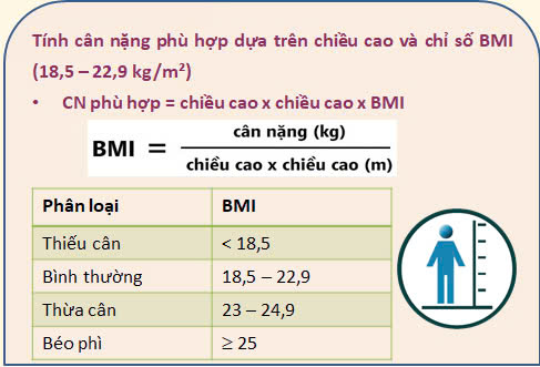 Nguyên tắc 1: Nhu cầu năng lượng dựa trên chiều cao, cân nặng, giới tính và mức độ lao động: ở nhóm lao động nhẹ, vừa mức năng lượng từ 30-35kcal/kg/ngày; nhóm lao động nặng từ 35-40kcal/ngày; nhóm thừa cân béo phì hạn chế 24-26kcal/kg/ngày.