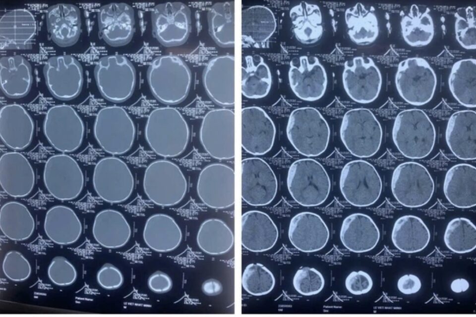 Mới đây, Khoa Ngoại Chấn thương, Bệnh viện Trẻ em Hải Phòng đã tiếp nhận bệnh nhi nam 6 tháng tuổi vào cấp cứu trong tình trạng hôn mê, thở máy. Trẻ được chụp CT scan cắt lớp sọ não, phát hiện có tụ máu dưới màng cứng lượng lớn, có chèn ép não vùng bán cầu não phải.
