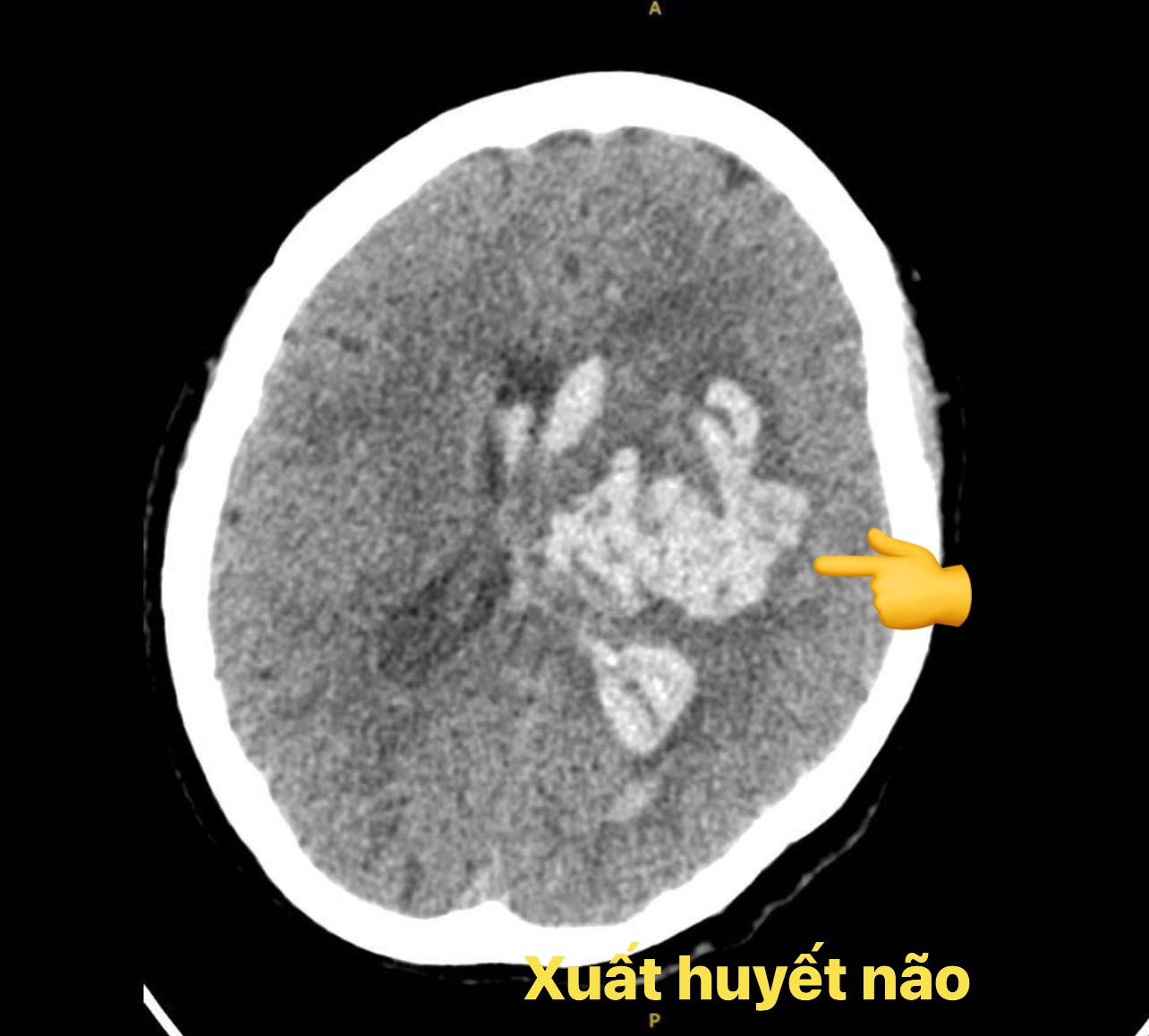 Bệnh nhân là nữ, 59 tuổi, có tiền sử tăng huyết áp và đái tháo đường nhưng uống thuốc không đều. Tối 10/8/2025, sau khi cãi vã và nổi giận với con, người bệnh đột ngột hôn mê. Gia đình đưa vào bệnh viện gần nhà, chụp CT sọ não cho thấy ổ xuất huyết não lớn, máu tràn vào não thất, gây chèn ép, lệch đường giữa, đe dọa tính mạng.
