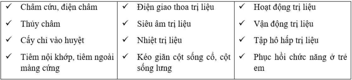 Cụ thể các phương pháp điều trị tại khoa bao gồm: