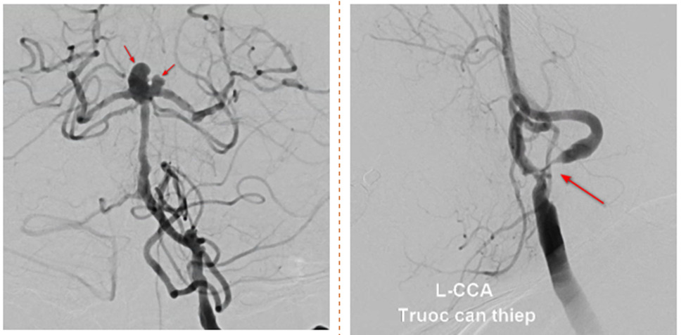 Điểm khó ở bệnh nhân này chính là tổn thương hẹp nặng động mạch cảnh trong trái và túi phình xảy ra cùng lúc nên điều trị cần triệt để cho cả 2 vấn đề. Về túi phình thì rất khó để can thiệp nội mạch dẫn đến phải sử dụng stent để hỗ trợ quá trình đặt coil giúp coil giữ ổn định trong lòng túi phình, một kỹ thuật khó trong can thiệp nội mạch.