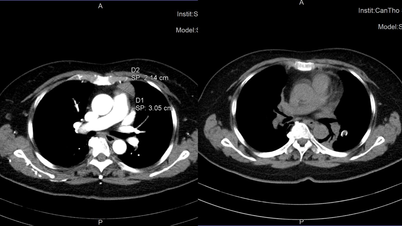 Hình ảnh khối u tuyến ức của bệnh nhân trước và sau khi mổ
