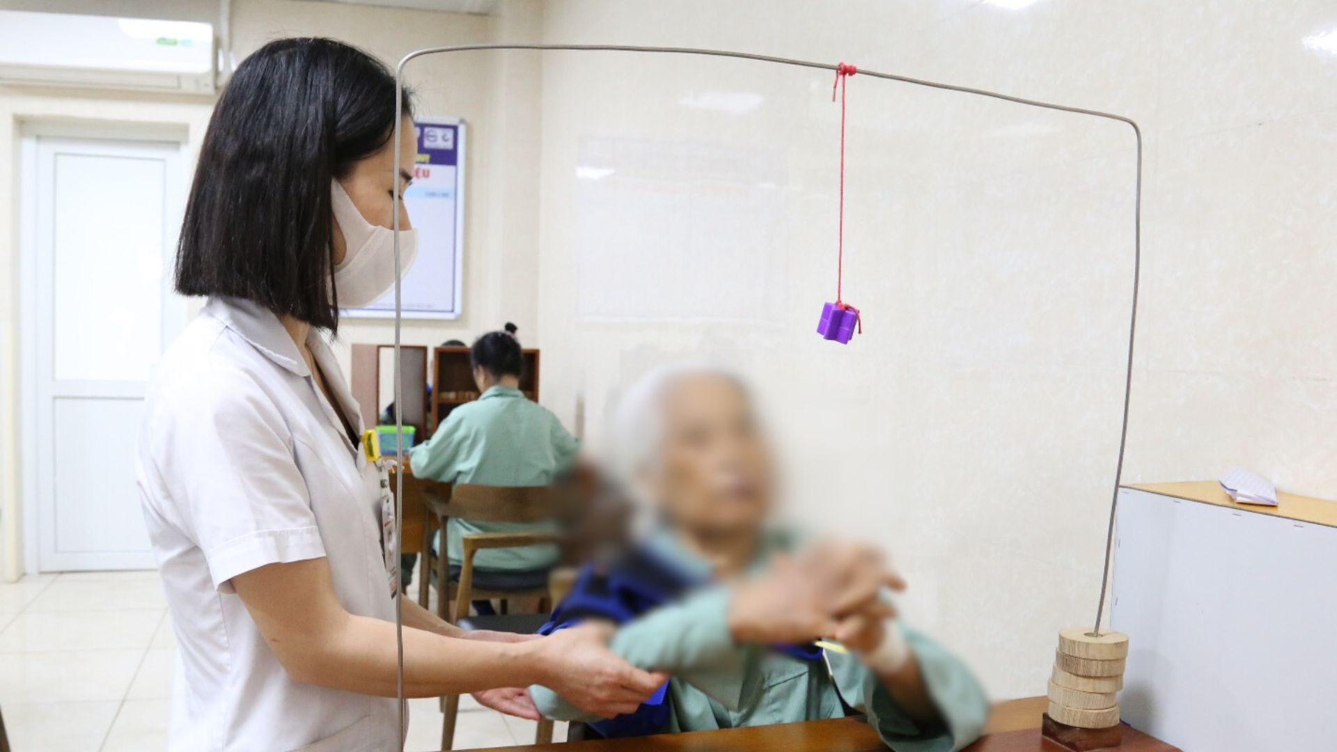 Hình ảnh người bệnh đang được hướng dẫn tập phục hồi chức năng (ảnh: BVCC)