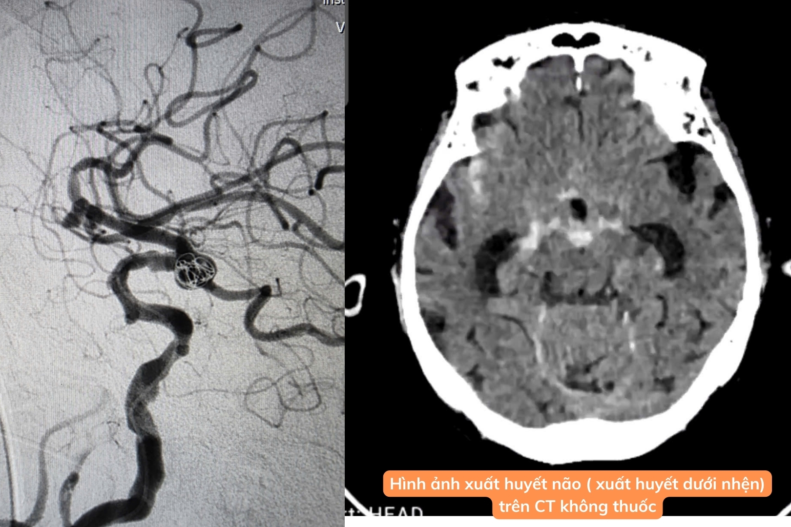 \nKhuya 19/8/2025, cụ bà 79 tuổi nhập viện trong tình trạng đau đầu dữ dội, có tiền sử tăng huyết áp. Ngay lập tức, ekip khoa Nội Thần kinh – Đột quỵ tiến hành chụp CT não và CTA mạch máu não, phát hiện xuất huyết dưới nhện do túi phình động mạch não đoạn C7 kích thước 3×5×5 mm vỡ.