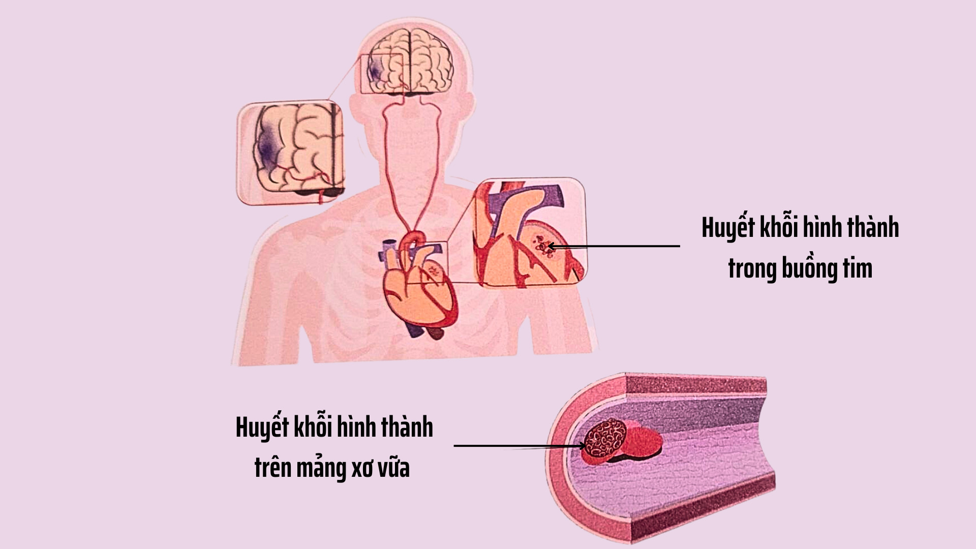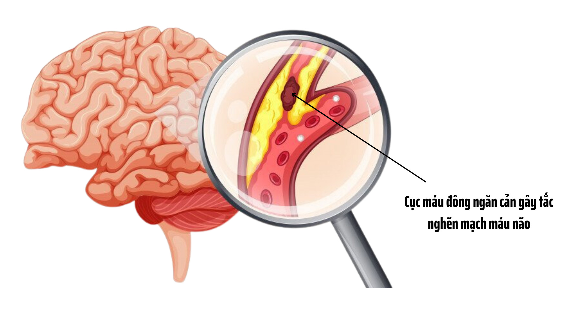 Mạch máu não bị tắc nghẽn do huyết khối từ tim hoặc từ mảng xơ vữa