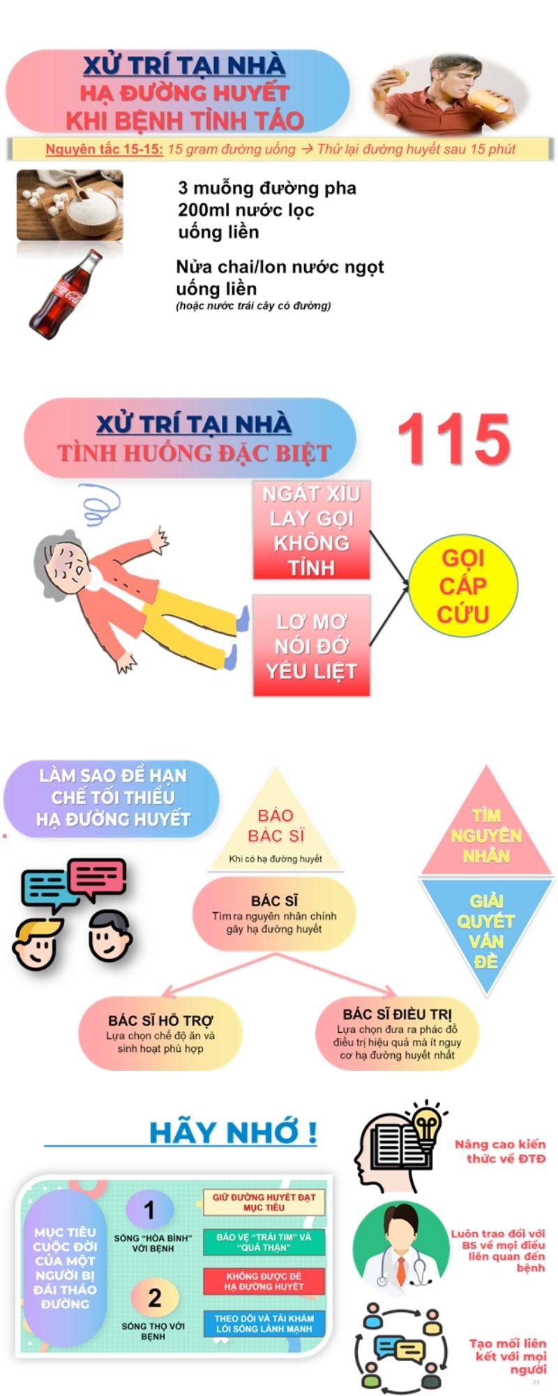 – Giáo dục người thân: Đảm bảo những người sống cùng hoặc tiếp xúc thường xuyên với bạn biết cách nhận diện và xử trí hạ đường huyết.