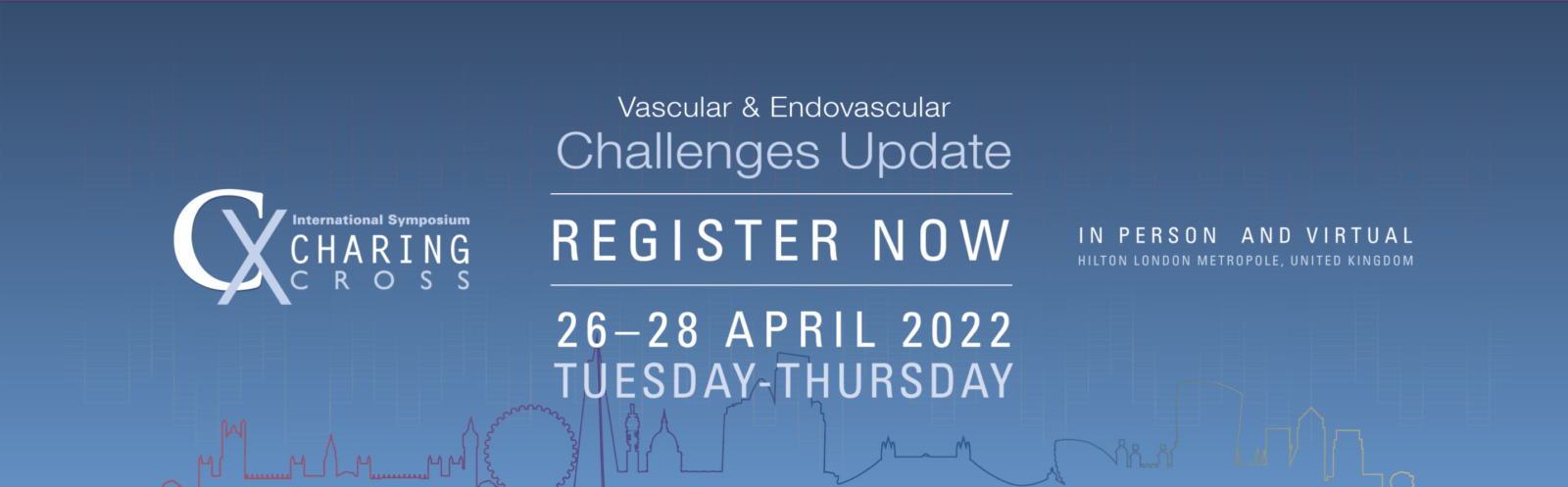 Hãy đón xem Hội nghị chuyên đề quốc tế Charing Cross 2022, hội nghị chuyên đề về mạch máu hàng đầu thế giới. CX 2022 sẽ được tổ chức trực tiếp tại London, Vương quốc Anh và trực tuyến cho khán giả toàn cầu.