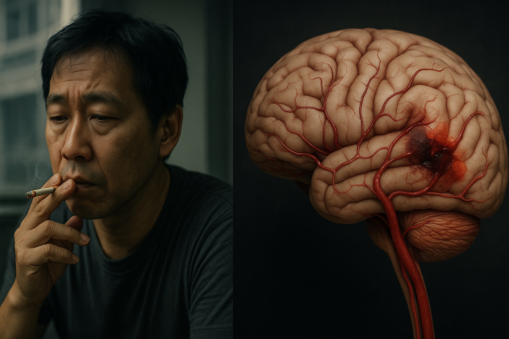 Theo Tổ chức Đột quỵ Thế giới, người hút thuốc có khả năng bị đột quỵ cao hơn người không hút từ 2 đến 4 lần. Đáng lo ngại, các nghiên cứu cũng cho thấy, người hít phải khói thuốc thường xuyên (hút thuốc thụ động) cũng đối mặt với nguy cơ tương tự. Hút thuốc làm tổn hại đến hệ mạch máu não, gây rối loạn nhịp tim và tăng nguy cơ hình thành huyết khối – những yếu tố dễ dẫn đến đột quỵ cấp tính, thậm chí tử vong nếu không được cấp cứu kịp thời.