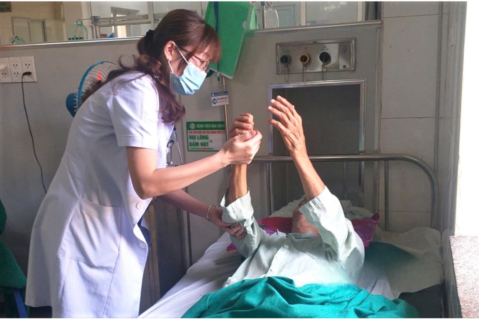 Nhân viên y tế chăm sóc người bệnh đột quỵ não tại Khoa Hồi sức cấp cứu và chống độc, Trung tâm Y tế huyện Mai Châu