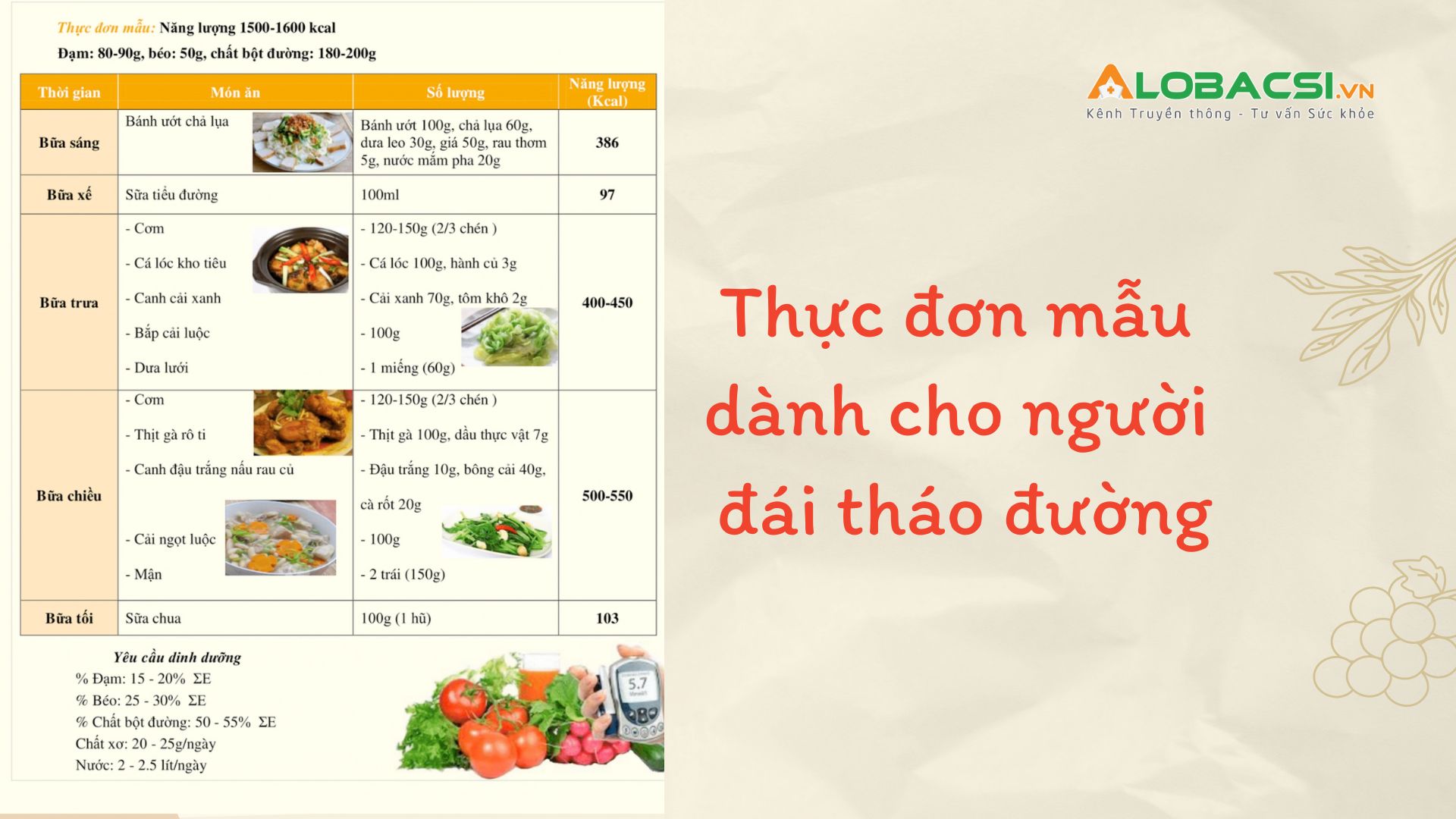 Infographic – Nguyên tắc dinh dưỡng chung cho bệnh nhân đái tháo đường