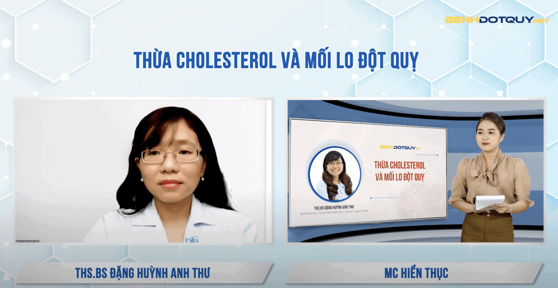 Theo thống kê của Hội Phòng chống tai biến mạch máu não Việt Nam, có 200.000 người Việt đột quỵ mỗi năm do rối loạn mỡ máu. Vậy làm sao để ngăn chặn nguy cơ thừa Cholestrol nói riêng và nguy cơ đột quỵ nói chung? Lời giải đáp từ ThS.BS Đặng Huỳnh Anh Thư – Phó Trưởng Bộ môn sinh lý, Sinh lý bệnh miễn dịch, Đại học Y dược TPHCM sẽ hữu ích trong vấn đề này.