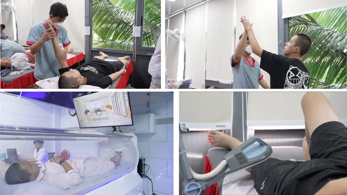 Bệnh nhân tập phục hồi chức năng tại Khoa Vật lý trị Liệu – Phục hồi chức năng, Bệnh viện Đa khoa Quốc tế S.I.S Cần Thơ