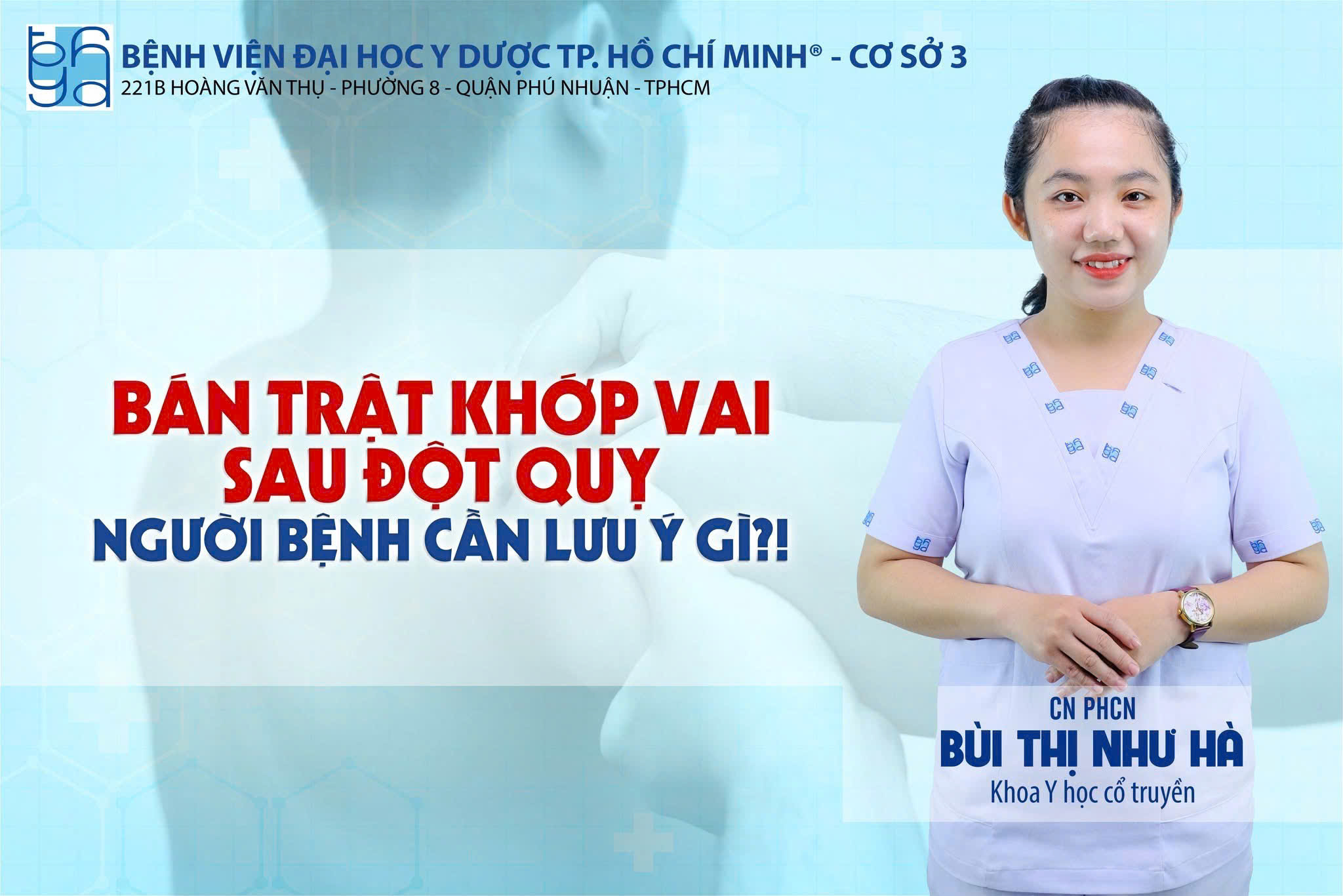 Bán trật khớp vai là tình trạng di lệch một phần chỏm xương cánh tay ra khỏi ổ chảo cánh tay. Vậy người bệnh cần lưu ý gì khi gặp tình trạng bán trật khớp vai sau đột quỵ? Dưới đây là một số thông tin hữu ích đến từ CN PHCN Bùi Thị Như Hà – Khoa Y học cổ truyền, Bệnh viện Đại học Y Dược TPHCM.
