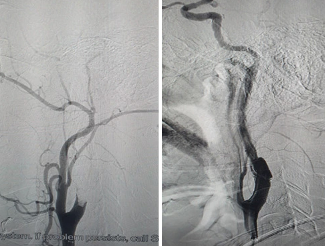 Hình ảnh tắc gốc động mạch cảnh trong phải và hình ảnh lóc tách gốc động mạch cảnh trong gây huyết khối.