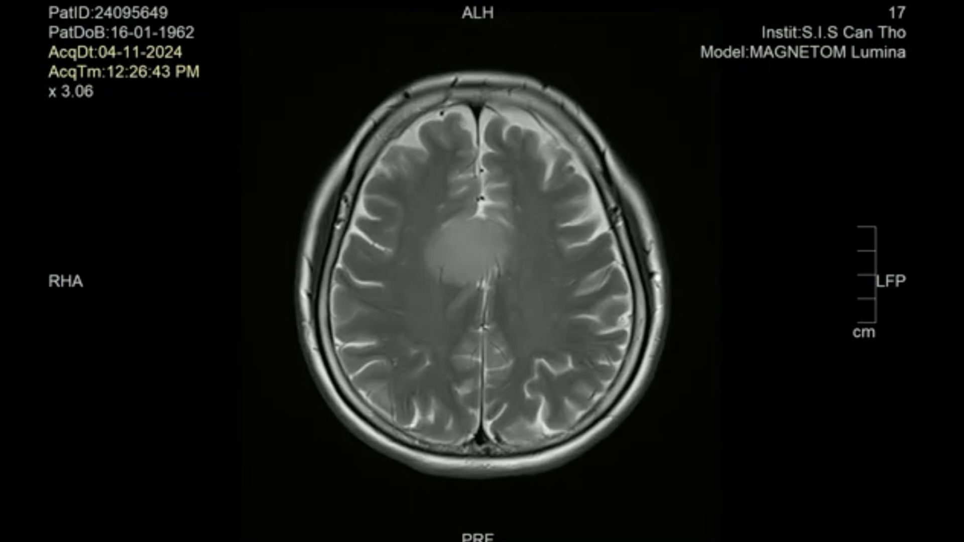 Đến giữa tháng 11/2024, theo lời khuyên từ gia đình, bà T. đến Bệnh viện Đa khoa Quốc tế S.I.S Cần Thơ để kiểm tra một lần nữa. Tại đây, kết quả chụp MRI cho thấy bà có một khối u kích thước khá lớn 35 x 40mm, và khả năng u lành tính.