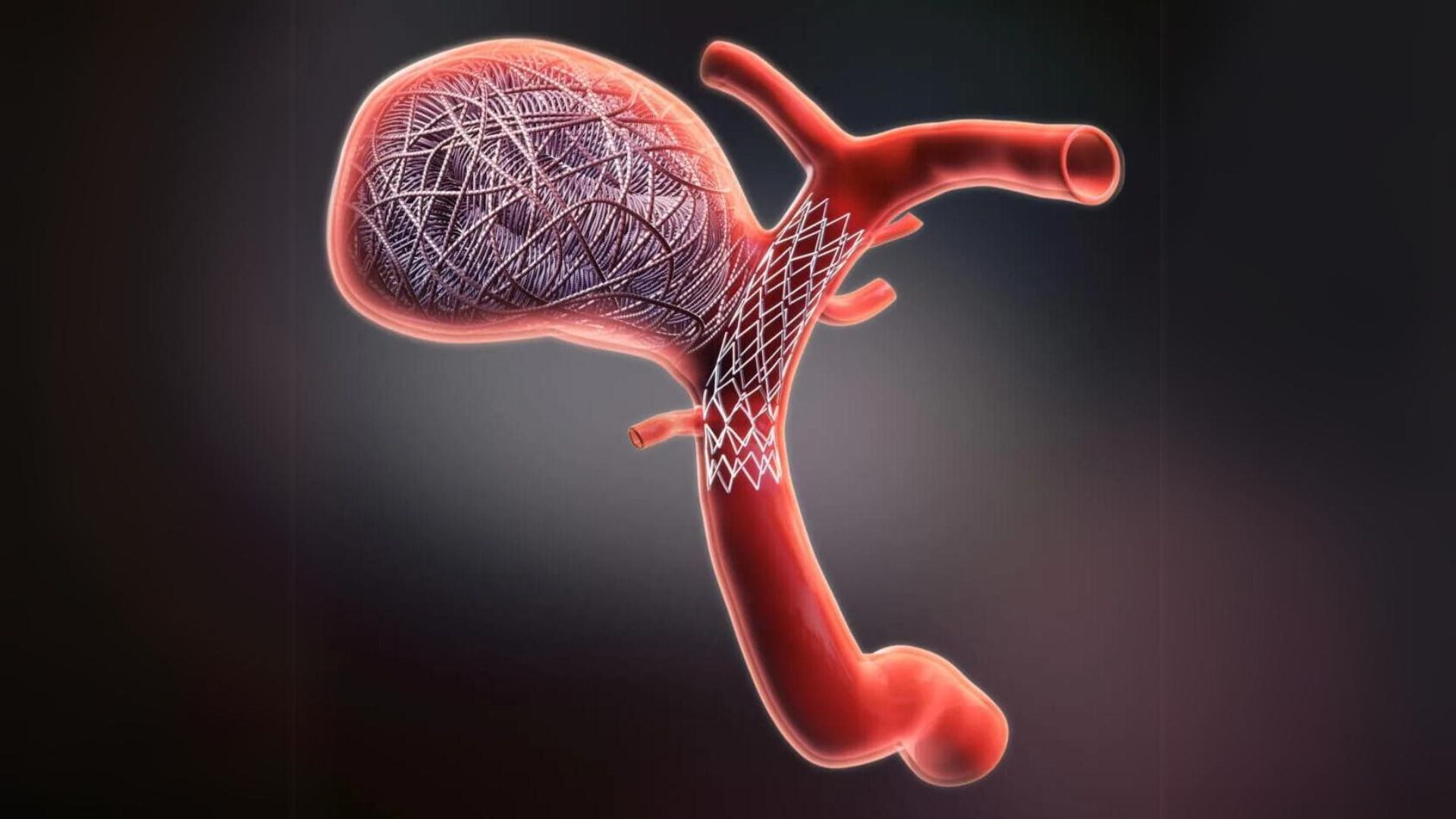 Phình động mạch được điều trị bằng phương pháp kết hợp đặt stent nội mạch và xoắn ốc (ảnh: internet)
