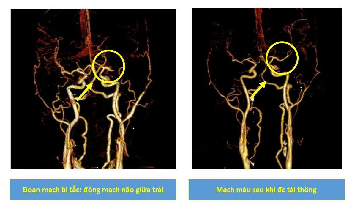 Ngay lập tức, người bệnh được chỉ định chụp mạch số hóa xóa nền (DSA) và can thiệp lấy huyết khối bằng dụng cụ cơ học. Nhờ được xử trí đúng cách và kịp thời, mạch máu não được tái thông, tình trạng bệnh nhân cải thiện nhanh chóng. Sau 3 ngày điều trị tích cực, bệnh nhân đã có thể đi lại, giao tiếp và sinh hoạt bình thường.