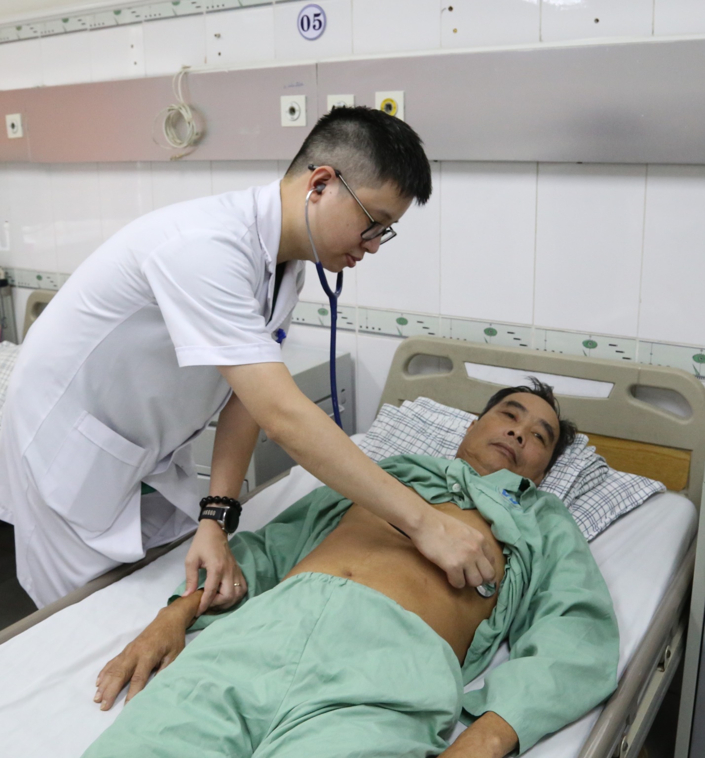 BS thăm khám cho bệnh nhân sau can thiệp (ảnh: BV)