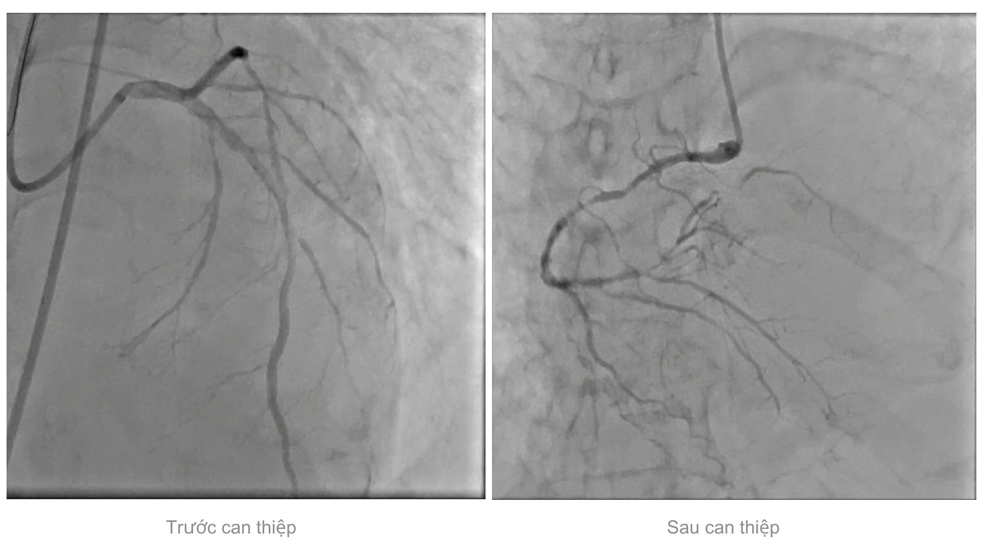 Bệnh nhân được tiến hành đặt 2 stent cùng lúc vào 2 nhánh bên trái. Sau can thiệp tình trạng huyết động bệnh nhân dần ổn định, ngưng được thuốc vận mạch và rút ống thở sau 2 ngày điều trị tại Khoa Hồi Sức Tích Cực.