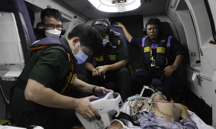 Trực thăng đưa ngư dân đột quỵ từ Trường Sa vào đất liền cấp cứu trong đêm