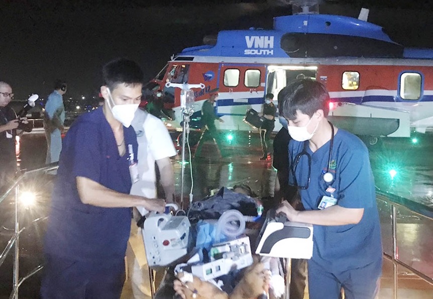 Bệnh nhân ở Trường Sa được chuyển về Bệnh viện Quân y 175 điều trị bằng trực thăng (Ảnh:BVCC)