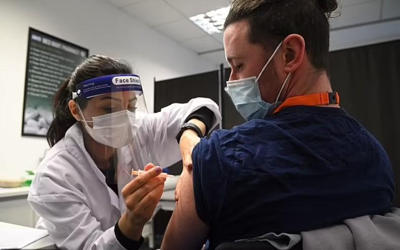 Một nhân viên y tế tiêm vắc xin Oxford / AstraZeneca ở Borehamwood vào ngày 15/2