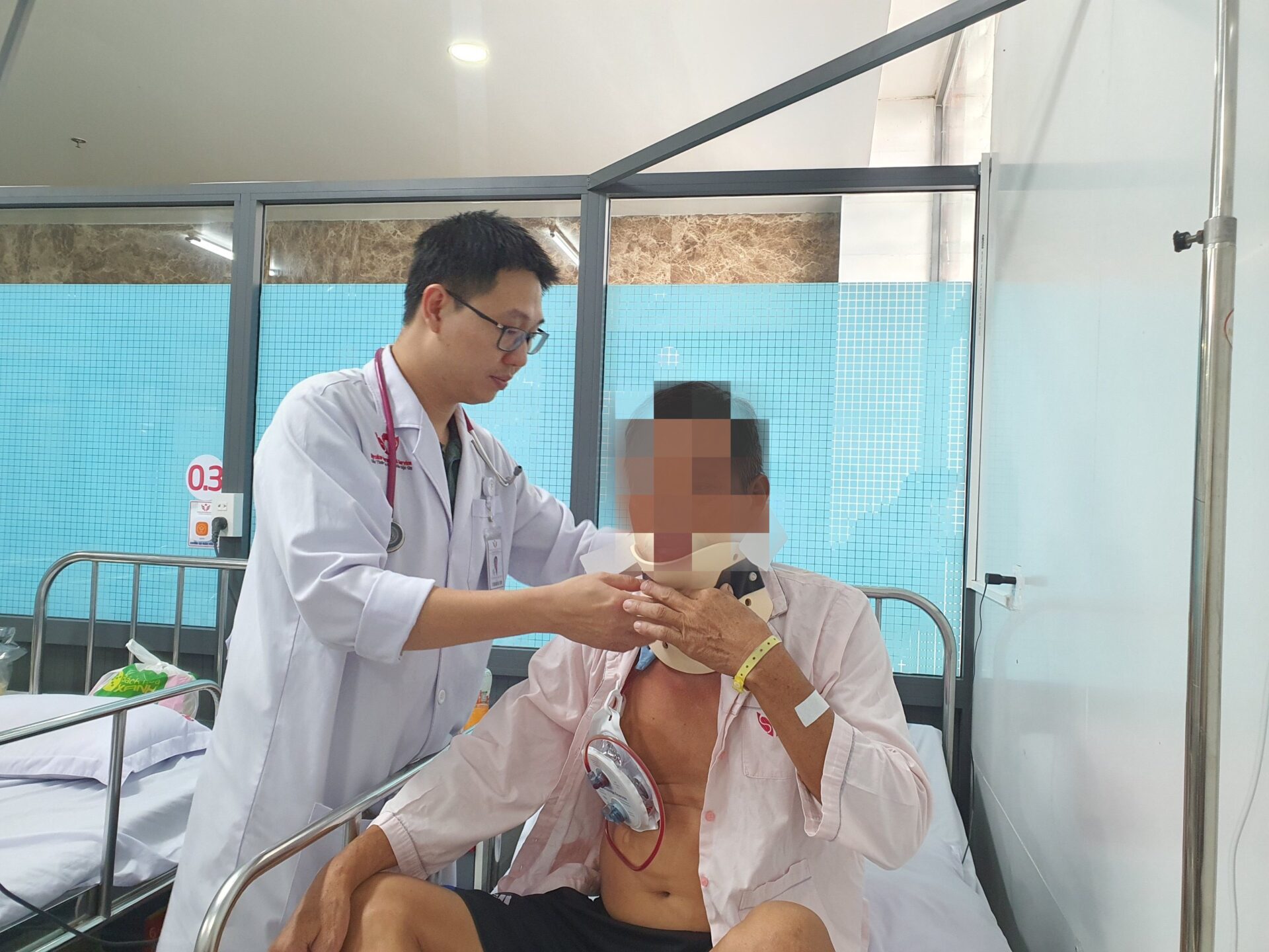 Bác sĩ cố định cột sống cổ cho bệnh nhân (Ảnh: BVCC)